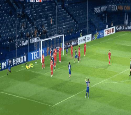 开场不到5分钟,在武里南联前锋的逼抢下,亚力斯祖一路往回盘带,一脚有力的回传,差点自摆乌龙。