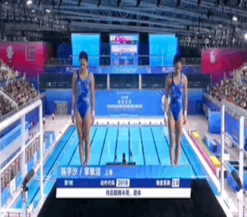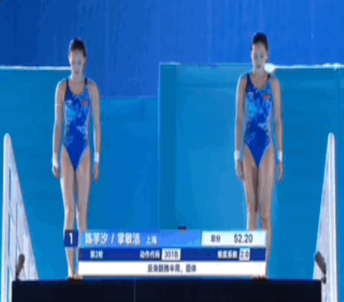 在上午的预赛中,陈芋汐和掌敏洁就以超第二名将近30分晋级,决赛中两人持续保持住了默契的配合,第一跳就以52.20的高分排名第一。