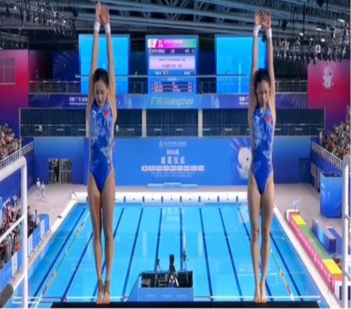 第二跳陈芋汐/掌敏洁稳扎稳打,以52.80分继续领跑。广东队的全红婵、王伟莹在落水时出现小瑕疵,排名从次席跌至第三。