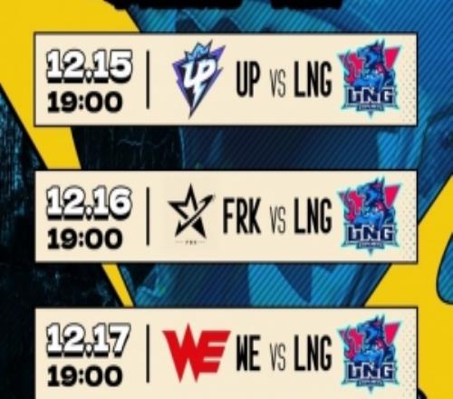 体育资讯12月14日报道宣称 LNG发布德杯阵容名单和赛程:全主力出战!对阵UP FRK和WE;